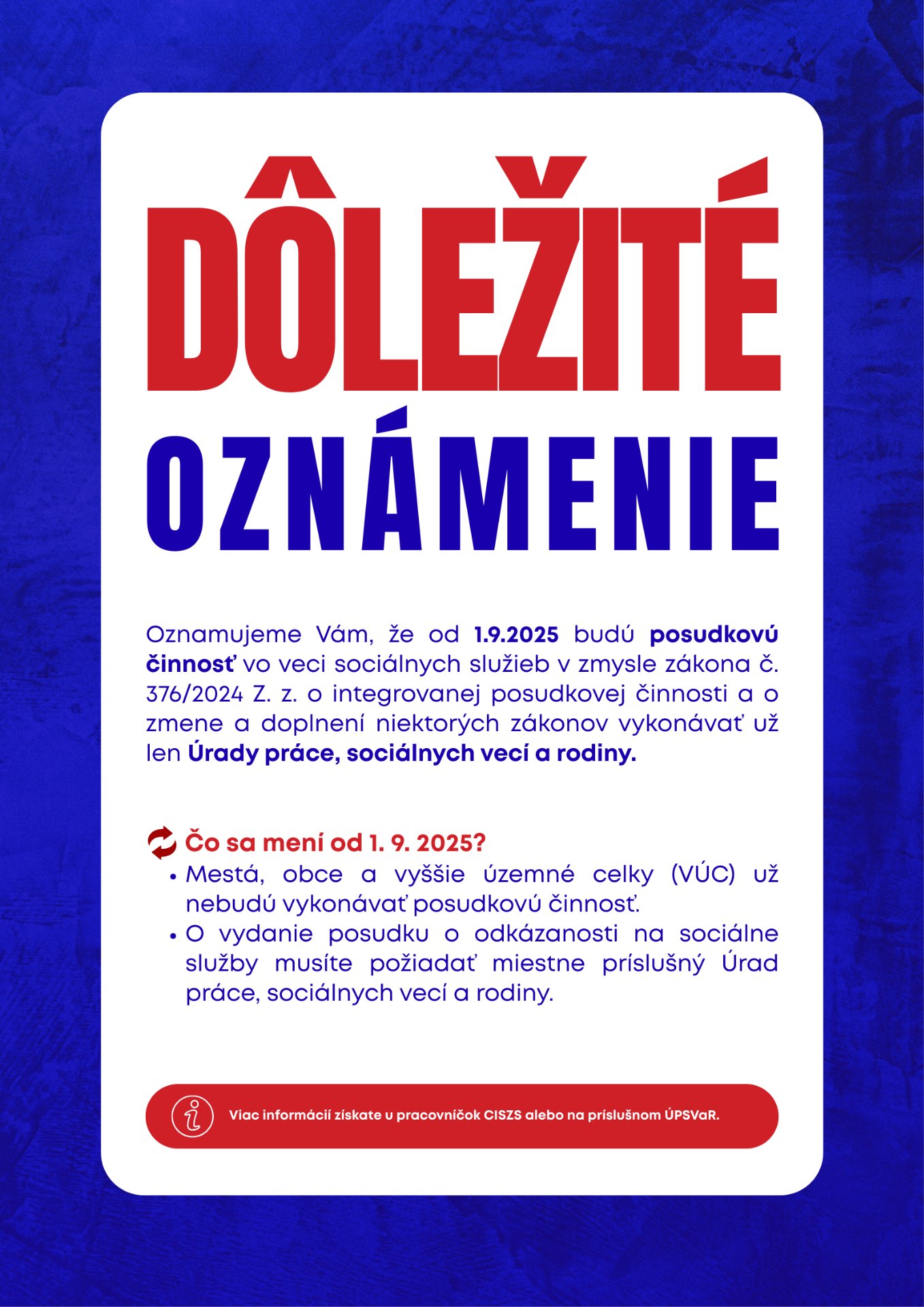 upozorňujeme Vás na prechod posudkovej činnosti na ÚPSVaR od 01.09.2025!!!!